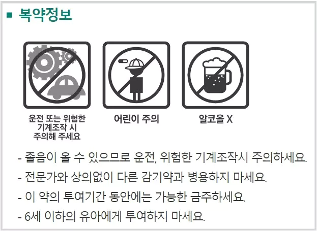 또한 알코올과 함께 복용하지 말아야 하고임신 중이거나 수유 중인 경우, 반드시 의사와 상담 후 사용해야 합니다.