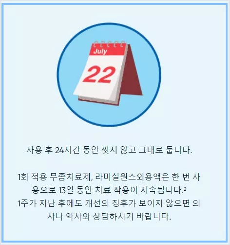 • 사용 빈도: '라미실 원스'는 단 1회 사용으로 충분합니다. 반복해서 사용하지 마십시오.